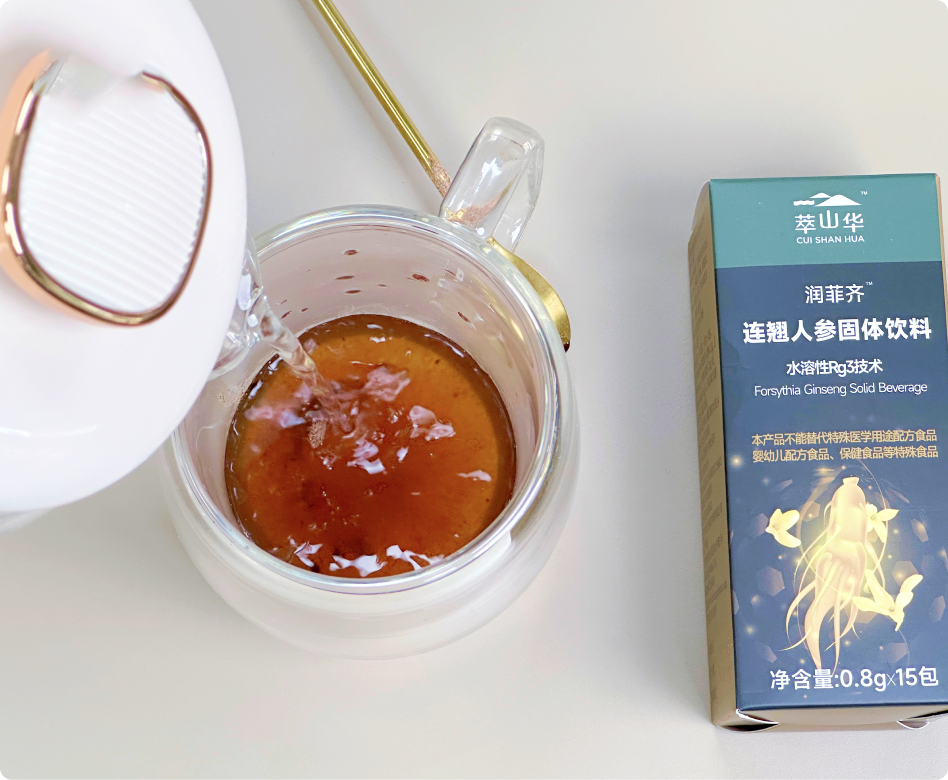 萃山華的「連翹人參固體飲料」是一款使用了自古以來被認為對健康有益的連翹和人參,精心製作的健康飲品。結合連翹的自然力量與人參的滋養,以固體飲料的形式呈現,方便忙碌的日常生活中隨時享用。該產品有助於維持日常健康與緩解疲勞,並支持身心的活力與健康生活。