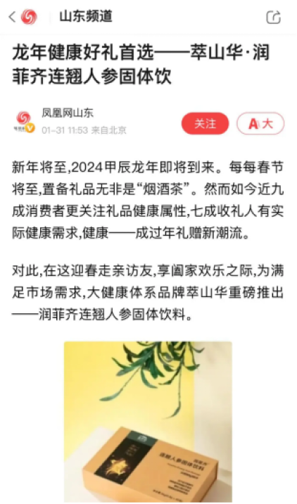 對此,在這迎春走親訪友,享闔家歡樂之際,為滿足市場需求,大健康體系品牌萃山華重磅推出——潤菲齊連翹人參固體飲料。